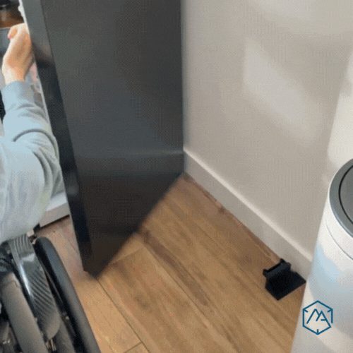 Ce cale porte permet de bloquer facilement la porte ouverte, le temps de déposer ou prendre ce que l'on veut.