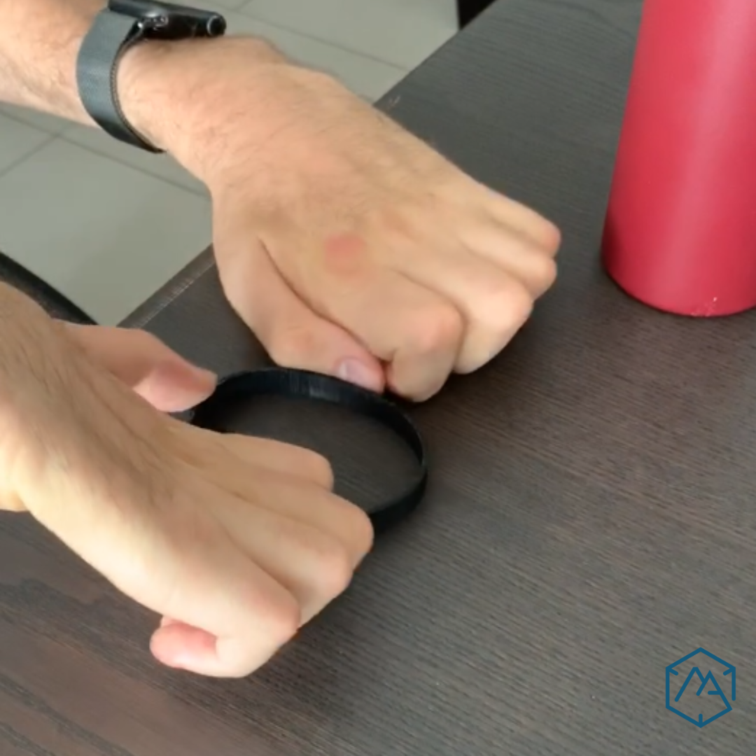 Ce bandeau imprimé en plastique souple permet de se saisir d'objets lisses et lourds.